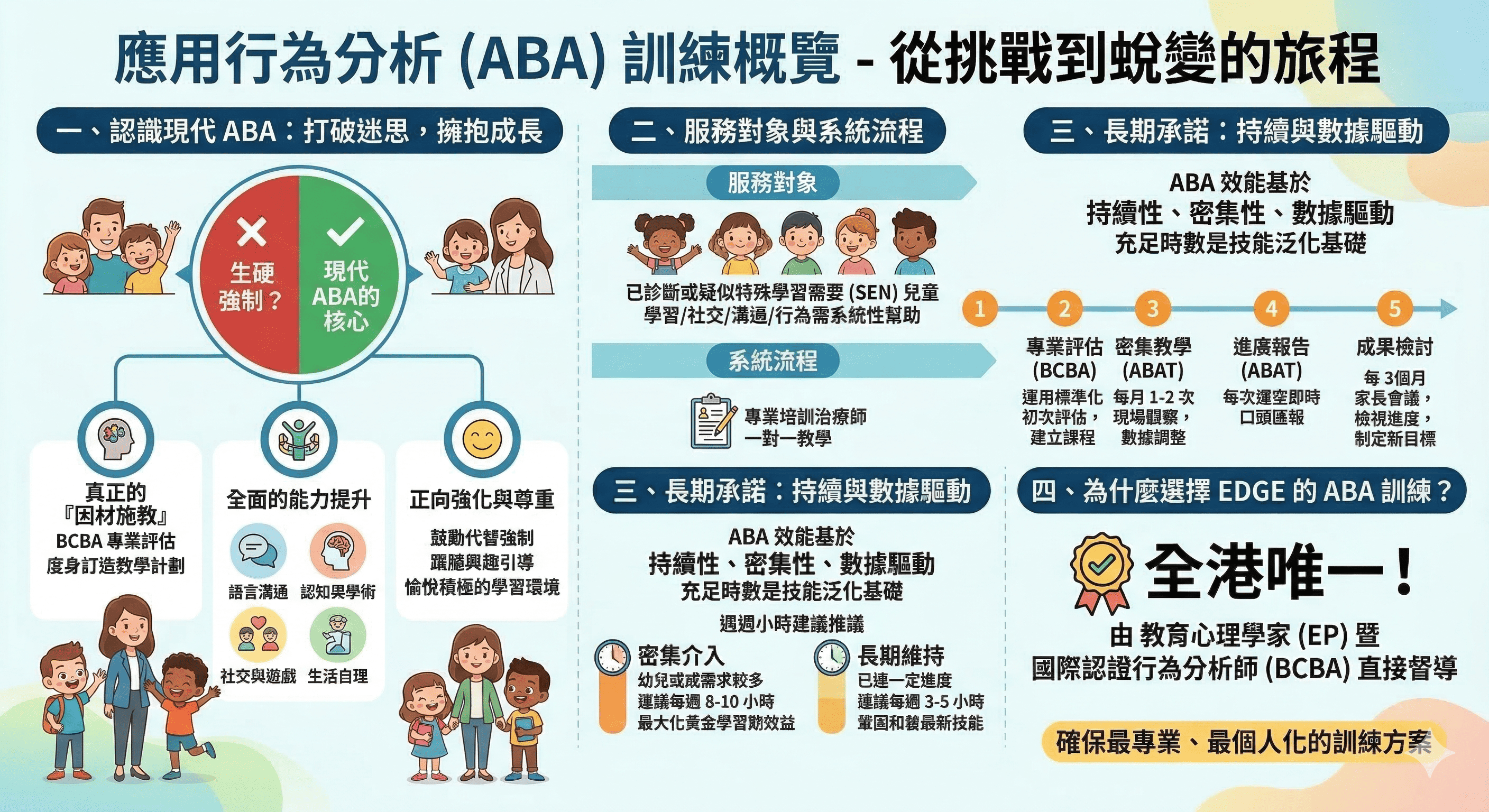 由本中心註冊教育心理學家(EP)及國際認證行為分析師(BCBA)督導,並由ABA治療師進行訓練